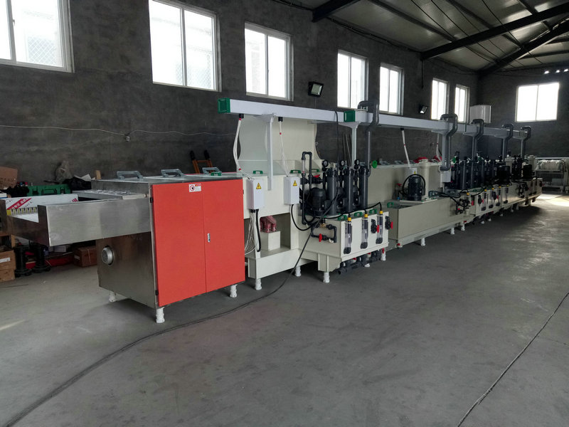 工藝流程入料→除油→壓力洗+市水洗 →微蝕→壓力洗+市水洗→酸洗→壓力洗+市水洗→純水洗→→純水洗*4→吸干洗→冷風干→隔離→熱風干→出料